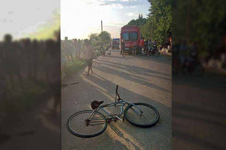 Al llegar la policía, se pudo constatar que por causas a establecer colisionaron una motocicleta Gilera Smash 110 cc., sin domicilio visible, con una bicicleta estilo playera de color gris, rodado 26, conducida por un adolescente de 14 años de edad.
