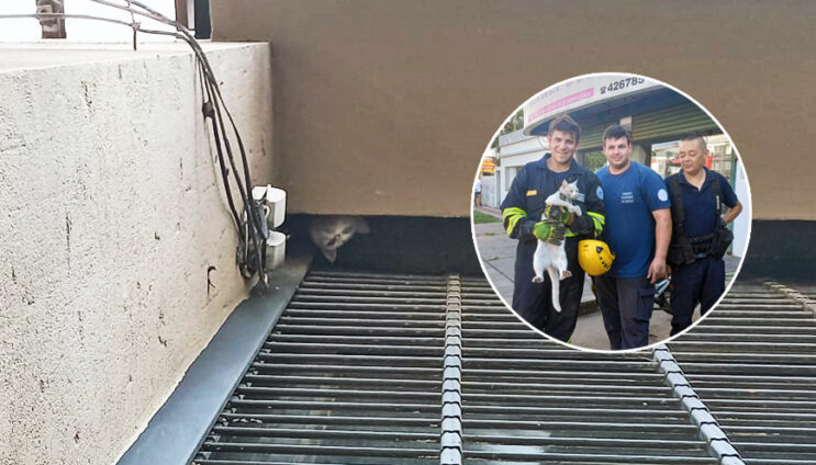 Luego de algunos trabajos, los bomberos lograron rescatar al felino y ponerlo a salvo.