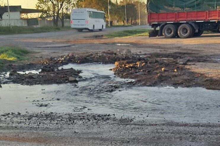 En horas del mediodía de este Lunes 18 de Abril se produjo un escape de gas y agua en Ruta 11 y Corrientes de Barrio San Sebastián en Puerto General San Martín, producto de la rotura de caños que hay en el lugar.