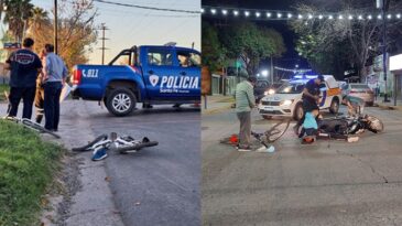 El hecho se produjo en la interseccion de las calles Nerbutti y 25 de Mayo donde, por razones que se deberán establecer, colisionaron dos motocicletas.