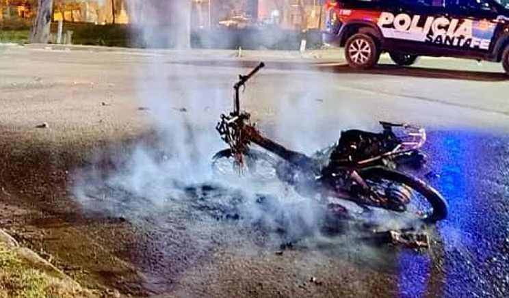 En el lugar, y por causas que se deberán establecer, colisionaron una motocicleta y un automóvil. Tras el impacto, el rodado menor se prendió fuego.