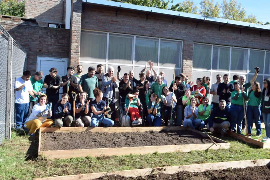 Integrantes de la compañía ubicada en Puerto General San Martín y los chicos del grupo pudieron trabajar en conjunto de manera integrada confeccionando la huerta, y disfrutando de una actividad inolvidable.