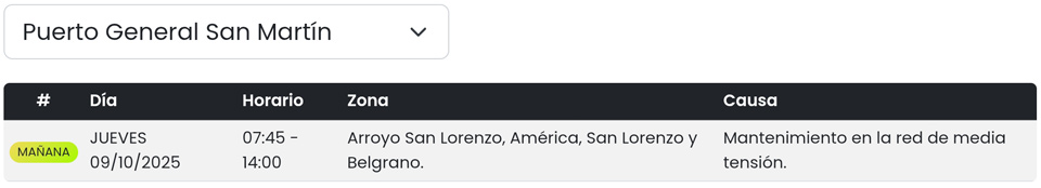 La Empresa Provincial de la Energía de Santa Fe (E.P.E) informó que, por trabajos de mantenimiento en la red de media tensión, el suministro eléctrico será interrumpido en un sector de la ciudad este jueves 9 de octubre, en el horario de 7:45 a 14:00 hs.