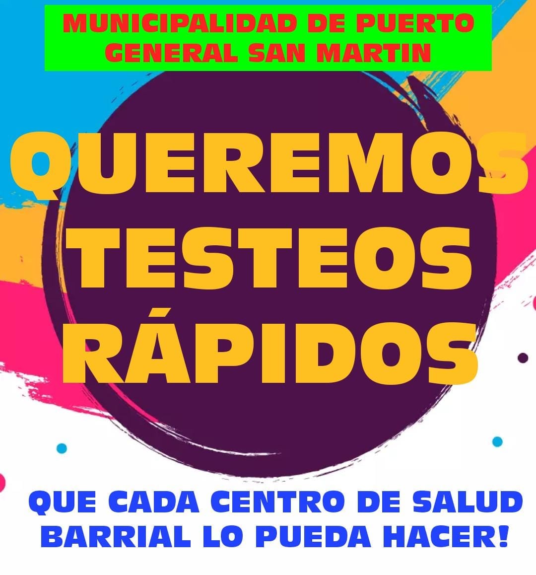 Vecinos de Barrio Fátima reclaman al gobierno de Carlos De Grandis, a través de su popular grupo de Facebook, que la Secretaría de Salud implemente más testeos rápidos en Puerto General San Martín a través de su personal especializado.