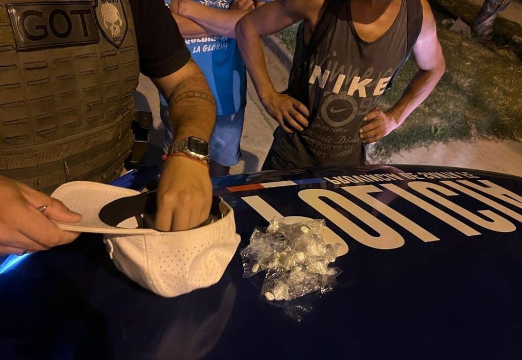 Durante el procedimiento lograron secuestrarle 20 envoltorios transparentes con contenido de color blanco, que llevaba en su mano y otros que llevaba sujetados a la cintura.