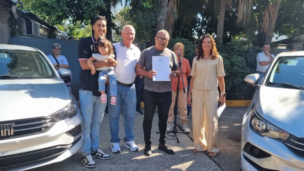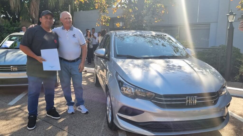 El Intendente Municipal de Puerto General San Martín, Carlos De Grandis, hizo entrega de 3 automóviles Fiat Cronos 0 Km a los empleados municipales que salieron sorteados como ganadores en la fiesta de la familia municipal.