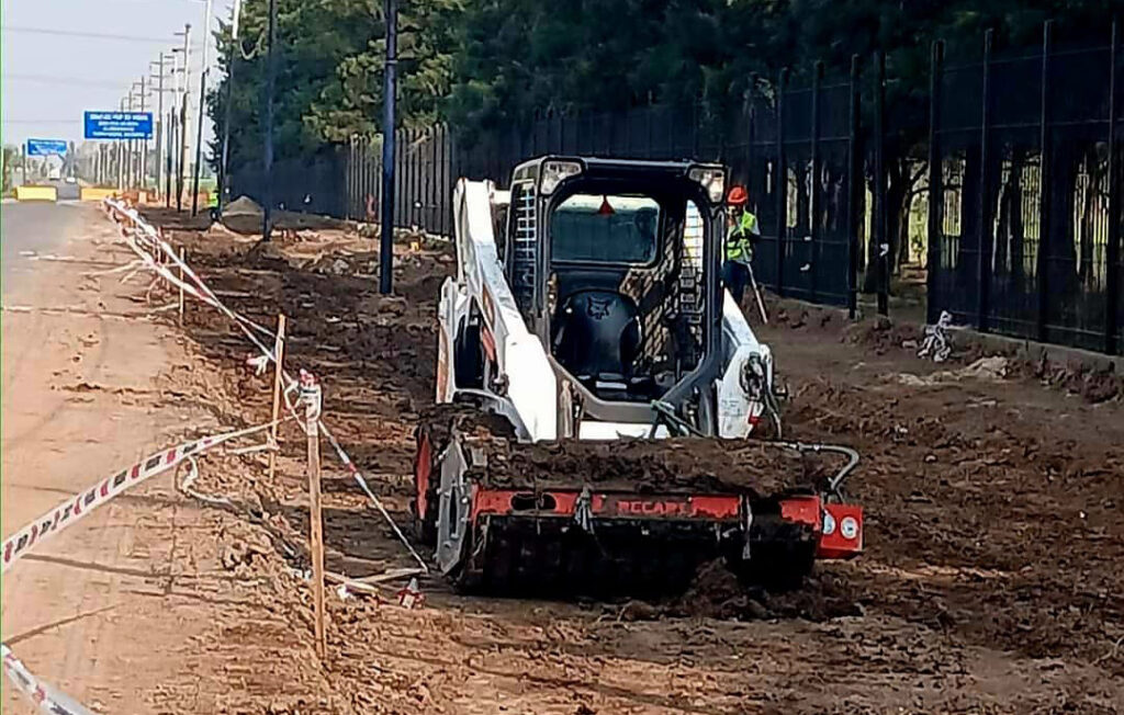 El intendente municipal de Puerto General San Martín, Carlos De Grandis, supervisó el avance de las obras de ampliación del estacionamiento de calle América, entre Rosario e Hipólito Yrigoyen.