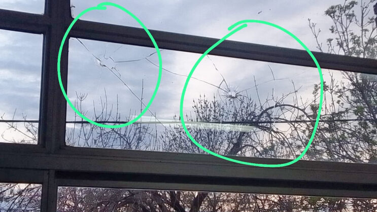 El Centro de Salud fue víctima de desconocidos que generaron daños en la parte superior e inferior de los vidrios del sector lateral sobre calle Reconquista del centro de salud, donde se encuentra la sala de espera de pediatría, esparciendo los vidrios en el interior.
