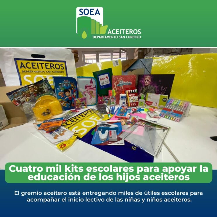 El gremio aceitero está entregando miles de útiles escolares para acompañar el inicio lectivo de las niñas y niños aceiteros. Es una enorme inversión para incentivar la educación de los futuros trabajadores.