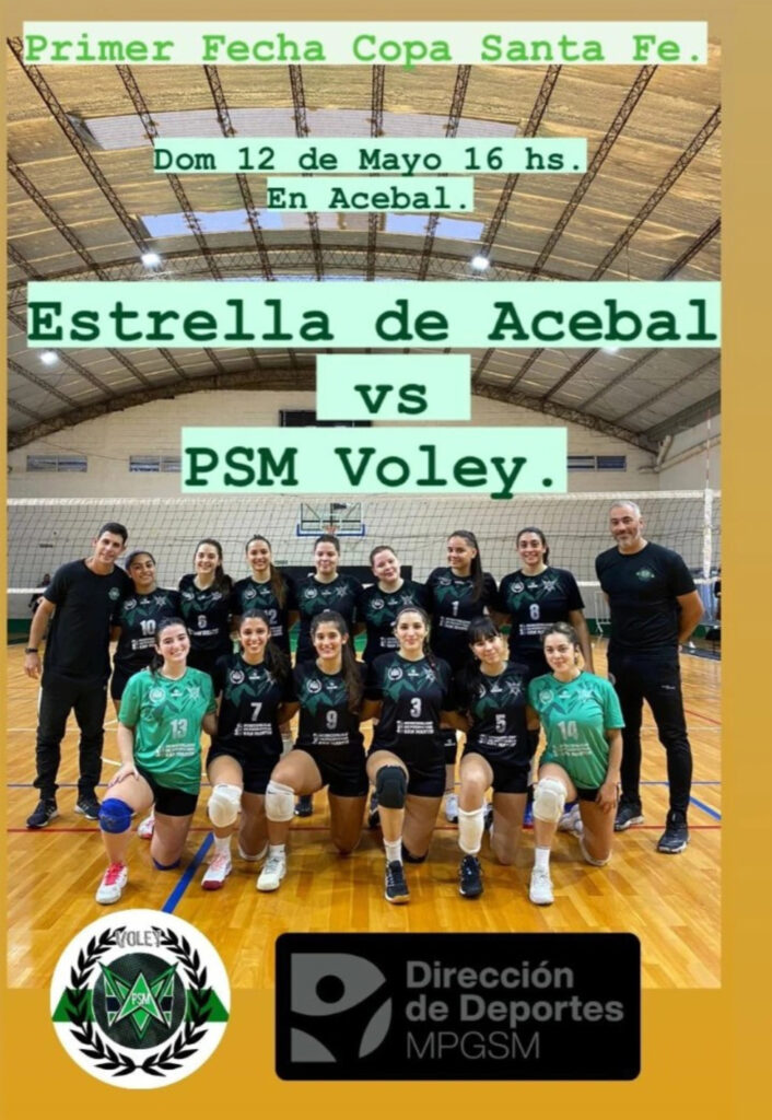El domingo 12 de mayo, a las 16:00 hs, el equipo femenino de Primera División de PSM Voley visita a Estrella de Acebal, por la primera fecha de la Copa Santa Fe de Voley 2024.