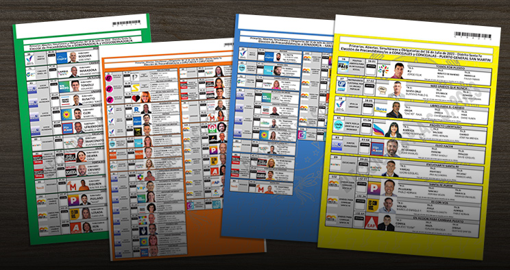 Éstas son las boletas que recibirán los electores en Puerto General San Martín al momento de presentarse en su mesa de votación.
