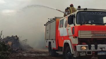 Bomberos Voluntarios y Zapadores trabajaron codo a codo combatiendo un incendio en Puerto General San Martín