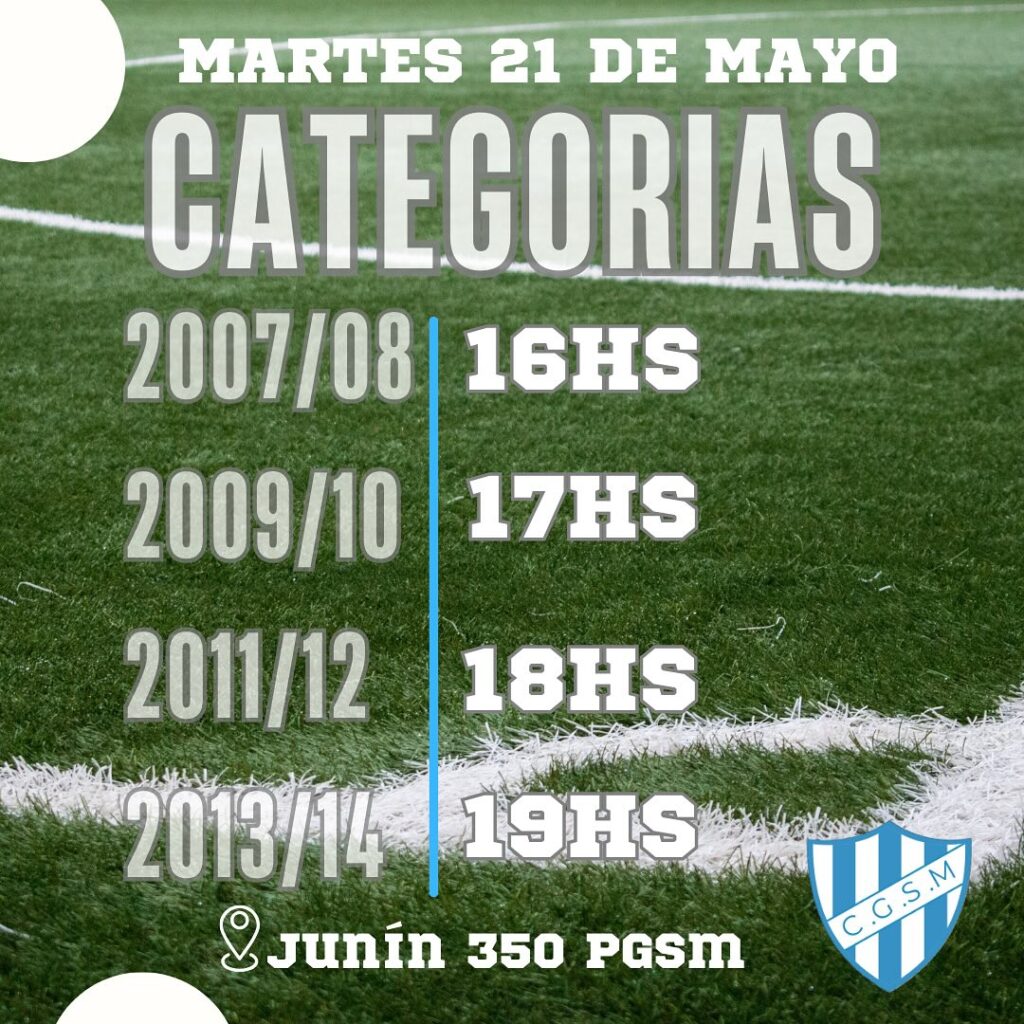 La prueba se realizará el día martes 21 de mayo, de 16 a 19 hs., y desde el club recomiendan asistir con indumentaria deportiva, canilleras e hidratación propia.