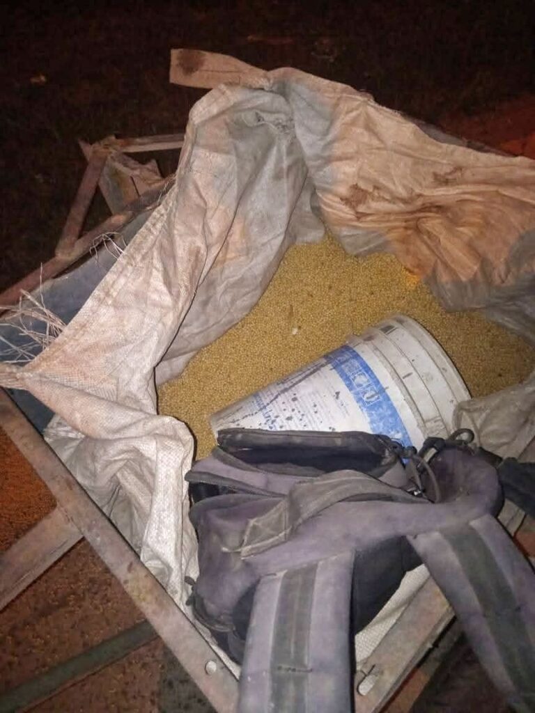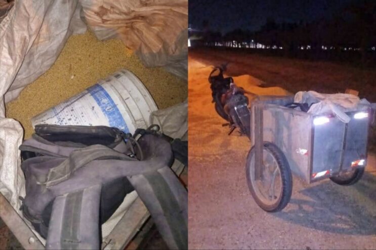 Le secuestraron una bolsa de arpillera con cereal (soja), una motocicleta marca Guerrero 110 y un carro con enganche.