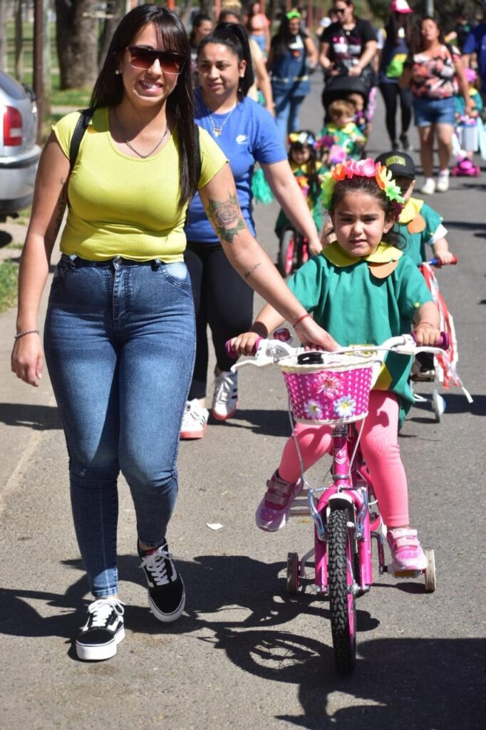Esta actividad se realizó en los turnos mañana, y tarde, con un recorrido desde el C.D.I de barrio Iturralde hasta el Circuito Aeróbico con decenas de niños que recibieron la primavera “Sobre Ruedas”, acompañados de docentes y familiares.