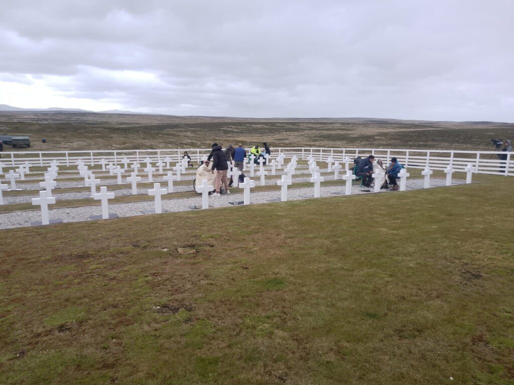 Este miércoles, familiares de caídos argentinos en la guerra de Malvinas viajaron en un viaje humanitario a las islas para visitar la tumba de sus seres queridos en el cementerio en Darwin.