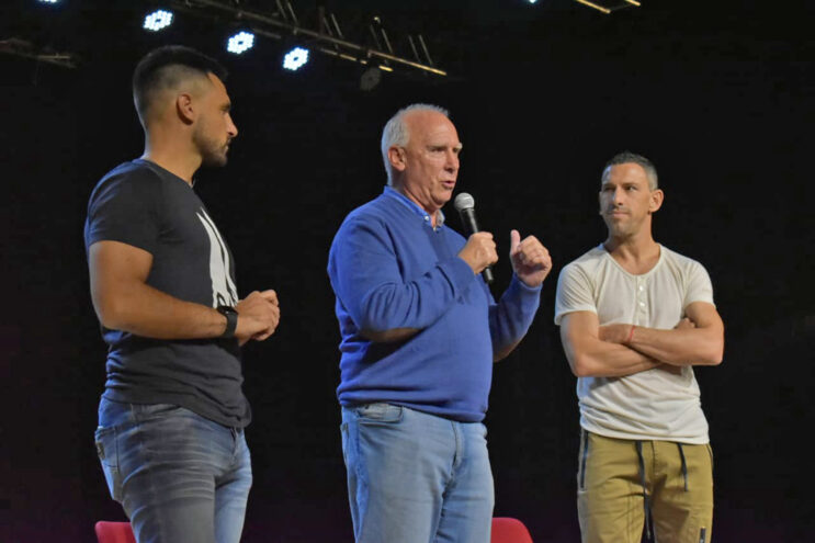 En la tarde de este miércoles, el último gran ídolo leproso brindó una charla en auditorio del Teatro Municipal de Puerto General San Martín, como parte de la propuesta municipal del ciclo “Puerto es Cultura” organizado por la Secretaría de Educación, Cultura y Deportes.