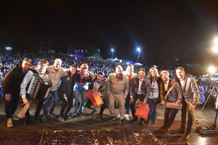 En la trastienda del escenario, como es costumbre, el intendente de esta ciudad y los concejales recibieron con mucho entusiasmo y agradecimiento a los artistas centrales del evento.