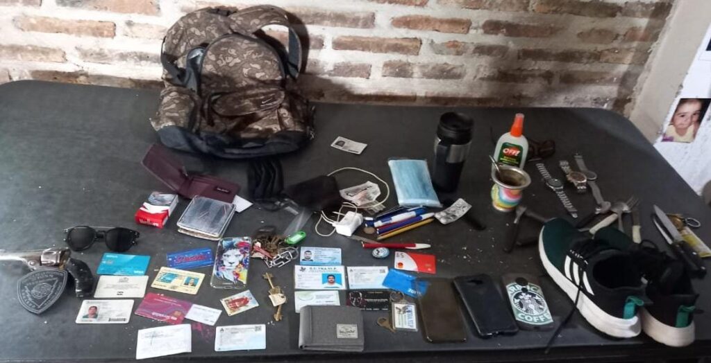Se efectuaron requisas en el domicilio, procediendo al secuestro de un revólver calibre 32 sin numeración, el rodado sustraído y la mochila con las pertenencias de la víctima de Puerto General San Martín.