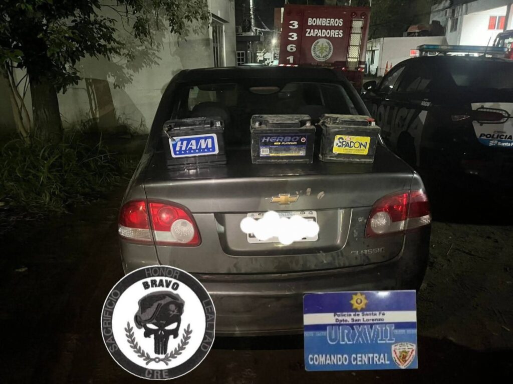 Al llegar, los uniformados hablaron con una testigo quien explicó que momentos antes, al encontrarse dentro de su casa, escuchó ruidos en el exterior y al asomarse vio un auto con un ocupante a bordo y otro que se hallaba sustrayendo la batería del auto de su vecino.