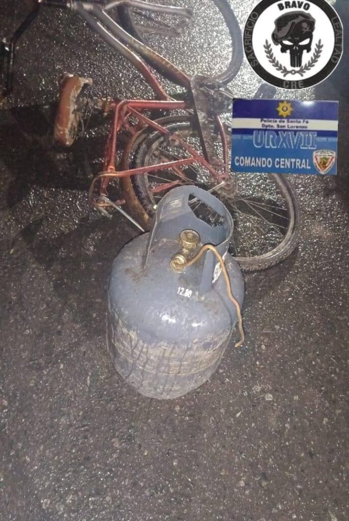 Le secuestraron una garrafa de 10 kg, color azul, con adaptador metálico.