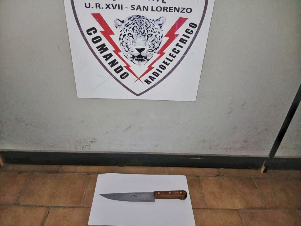 Se le secuestró entre sus ropas un cuchillo tipo carnicero y fue trasladado a la sede policial como aprehendido.