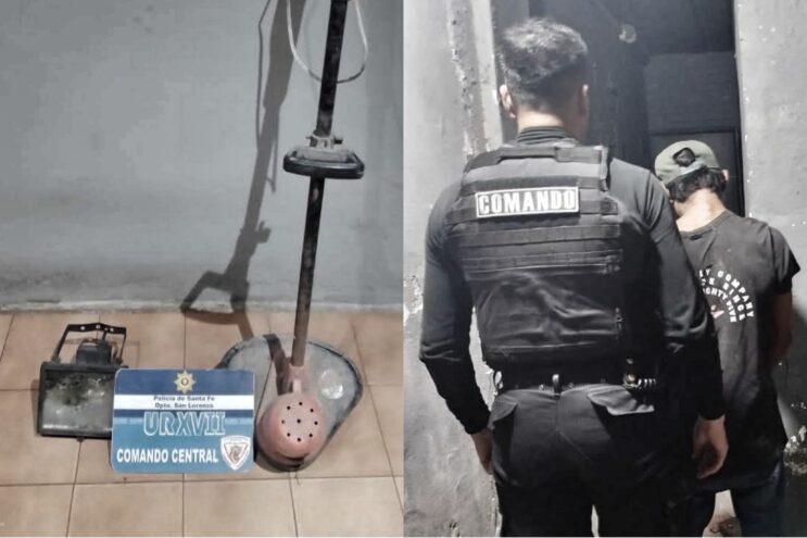Los oficiales procedieron a la identificación del sospechoso, siendo un hombre de 28 años de edad y domiciliado en Puerto General San Martín. Luego hallaron también una bordeadora y una mochila de color negro que en su interior contenía un reflector.