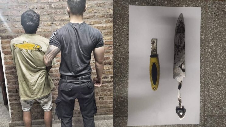 Tras una requisa, los policías descubrieron en el interior del bolso un arma blanca, tipo cuchilla de acero de 31 cms sin mango, y un objeto similar a una espátula.