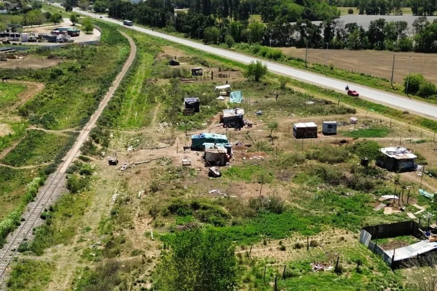 En el material captado en Ruta 11, entre América y Juan Domingo Perón, puede observarse la demarcación del terreno e instalación de viviendas totalmente precarias, sin servicios esenciales, y en espacios ubicados entre la ruta y las vías del ferrocarril.