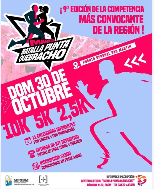 La Municipalidad de Puerto General San Martín abrió el proceso de inscripción para quienes deseen participar de la 9ª Maratón “Batalla Punta Quebracho” a realizarse el domingo 30 de octubre.